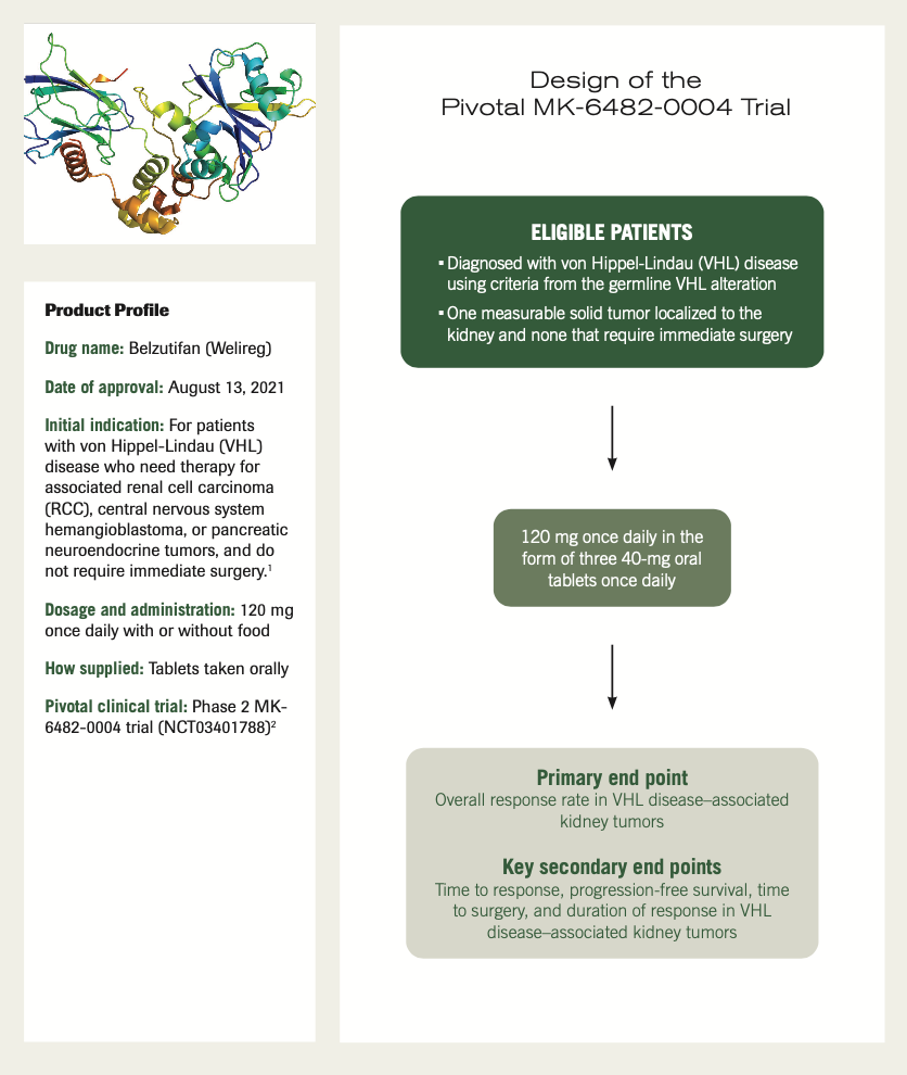 1. Belzutifan. Prescribing information. Merck; 2021. Accessed December 1, 2021. https://bit.ly/3rqE7OJ