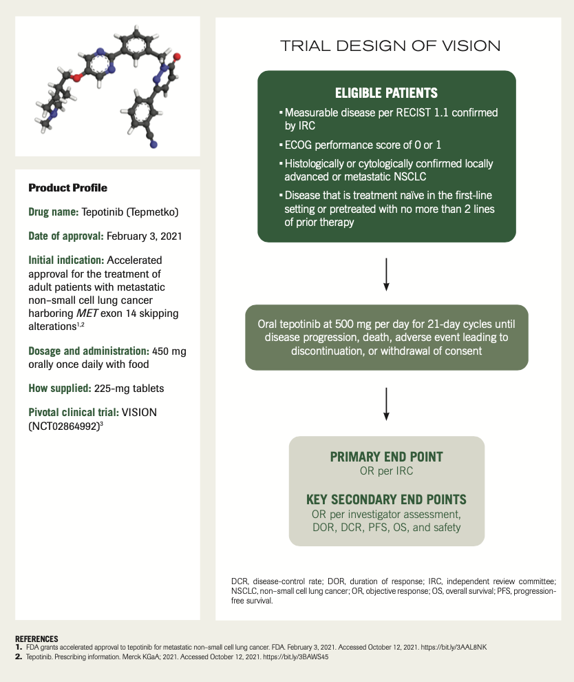 1. FDA grants accelerated approval to tepotinib for metastatic non–small cell lung cancer. FDA. February 3, 2021. Accessed October 12, 2021. https://bit.ly/3AAL8NK