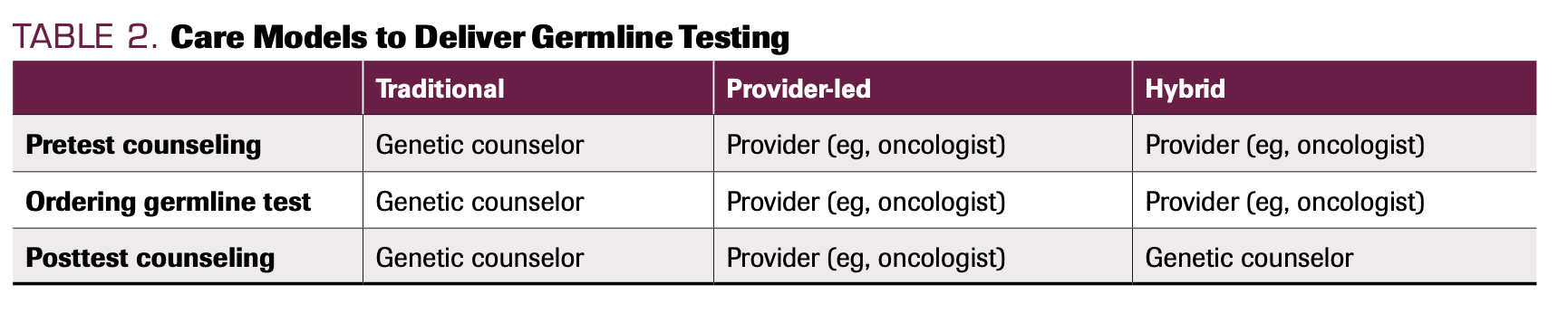 TABLE 2. Care Models to Deliver Germline Testing