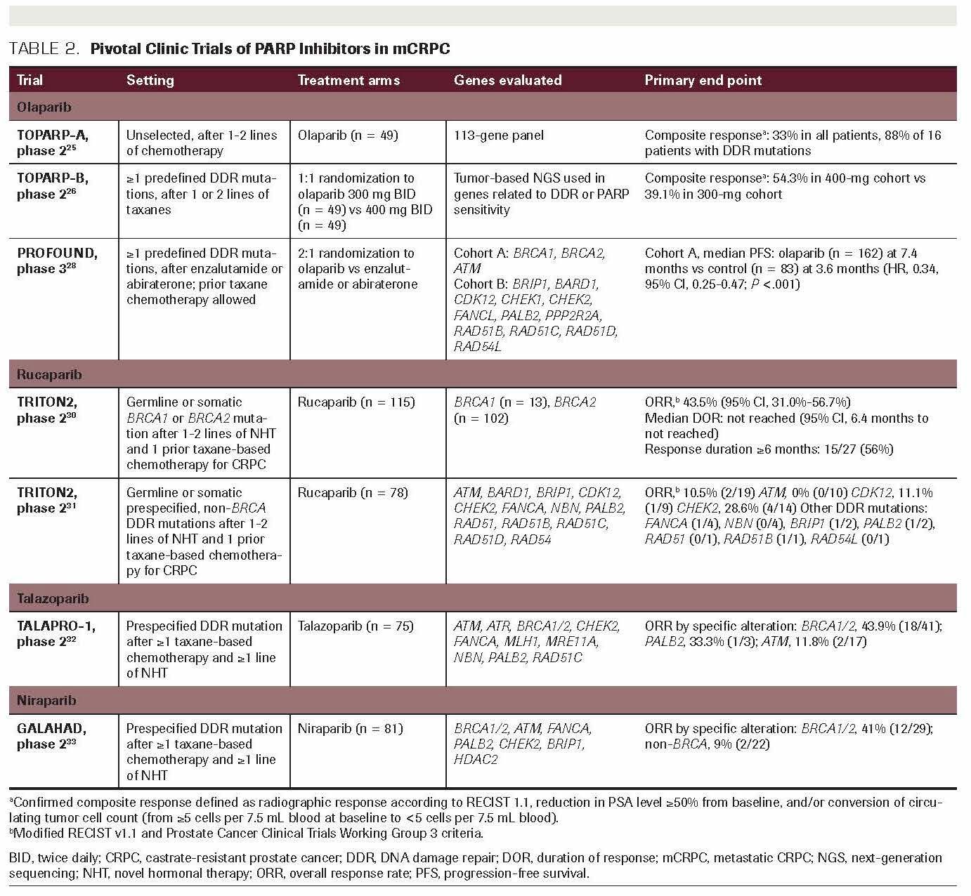 TABLE 2. Pivotal Clinic Trials of PARP Inhibitors in mCRPC
