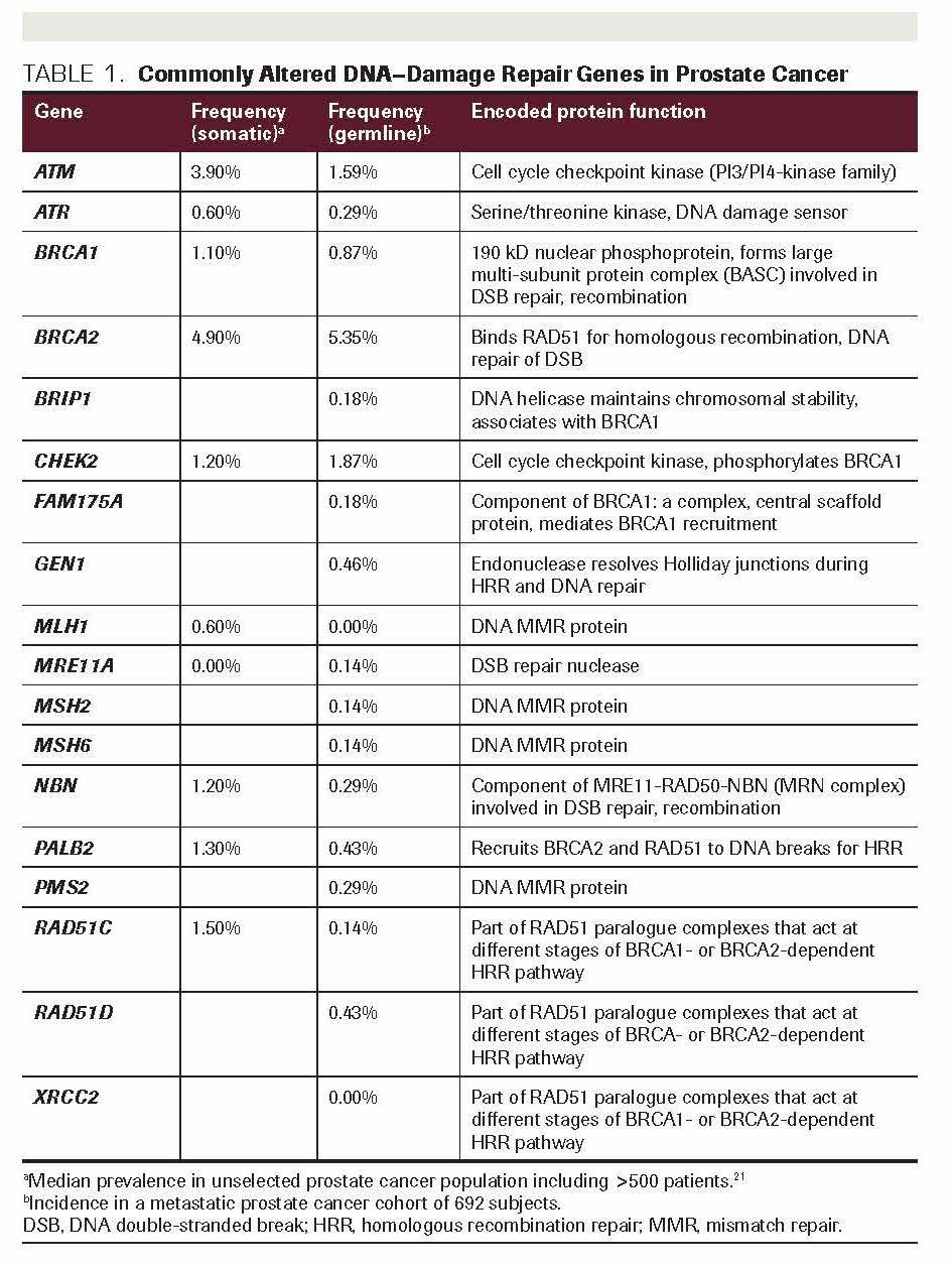 TABLE 1. Commonly Altered DNA–Damage Repair Genes in Prostate Cancer