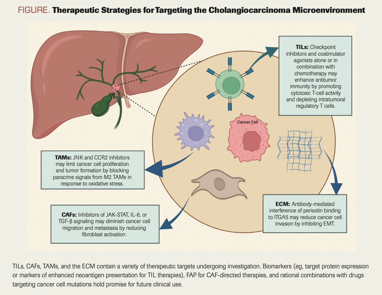 FIGURE. Therapeutic Strategies for Targeting the Cholangiocarcinoma Microenvironment