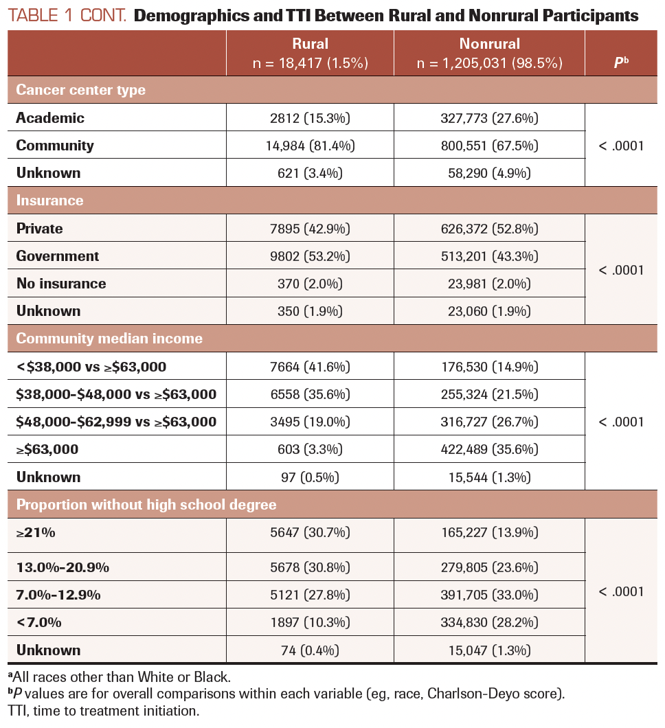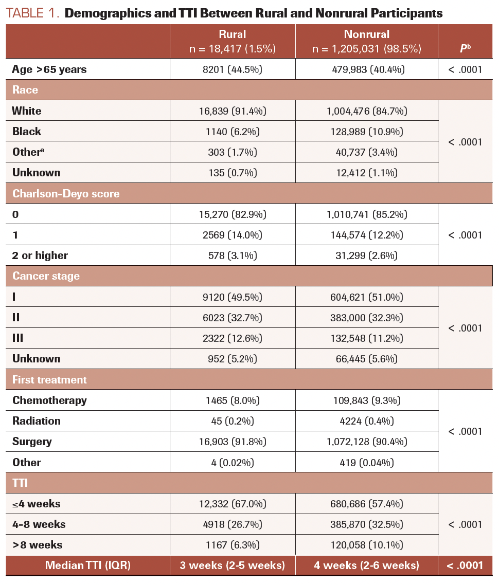 TABLE 1. Demographics and TTI Between Rural and Nonrural Participants