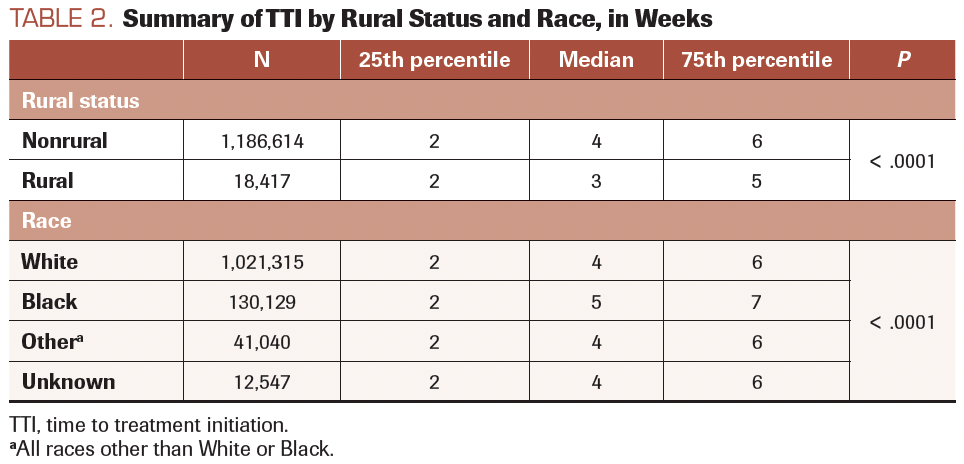 TABLE 2. Summary of TTI by Rural Status and Race, in Weeks