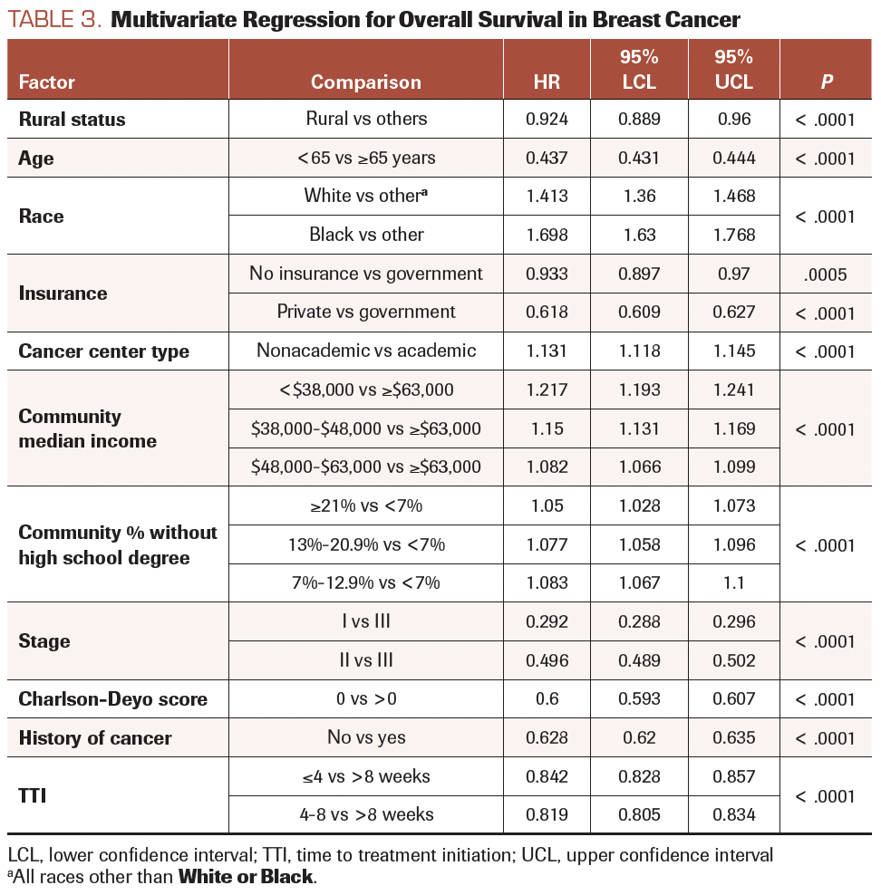 TABLE 3. Multivariate Regression for Overall Survival in Breast Cancer