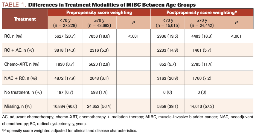 TABLE 1. Differences in Treatment Modalities of MIBC Between Age Groups