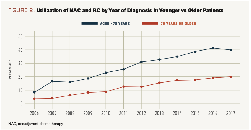 FIGURE 2. Utilization of NAC and RC by Year of Diagnosis in Younger vs Older Patients