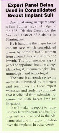 Significant legal decisions have turned on scientific evidence, or a lack of it, regarding the toxicity or carcinogenicity of such substances as asbestos, silica, Agent Orange, vinyl chloride, and benzene, and the relationship of the Dalkon Shield intrauterine device with uterine infection and the link between high-absorbency tampons and toxic shock syndrome. The most prominent example now before the courts is whether silicon gel breast implants cause immune system illnesses, abnormal tissue growth, chronic pain, and other disorders (see box below).