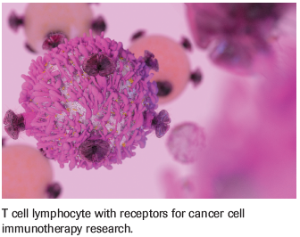 T-cell lymphocyte with receptors for cancer cell immunotherapy research (image courtesy of catalin/Adobe Stock)