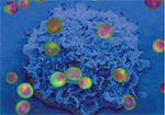 Oral cancer cells shown in pink by epifluoresence imaging are overlaid on a SEM image of a single cell from a suspicious oral lesion on a membrane. Image reproduced by permission of Dr. John McDevitt and The Royal Society of Chemistry from Weigum et al: