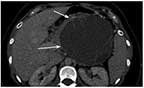The Patient's 13-cm Mucinous Cystic Neoplasm Is Indicated by Arrows.