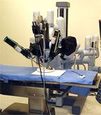 The patient-side cart of the da Vinci laparoscopic robotic surgical system, used in robot-assisted radical prostatectomies; source: Nimur, Wikimedia Commons