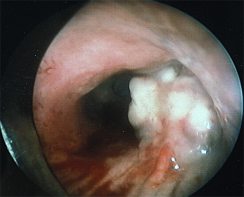 Figure A: Bronchoscopic View of a Central Airway Tumor Involving the Right Upper Lobe of the Lung.