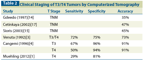 Table 2: Clinical Staging of T3/T4 Tumors by Computerized Tomography