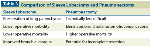 Table 3: Comparison of Sleeve Lobectomy and Pneumonectomy
