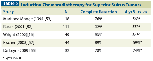 Table 5: Induction Chemoradiotherapy for Superior Sulcus Tumors