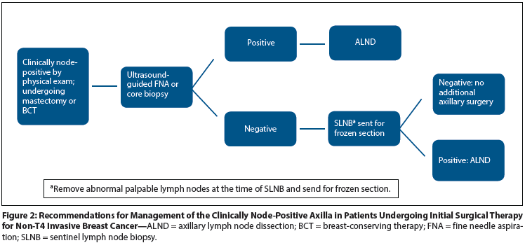 Figure 2: Recommendations for Management of the Clinically Node-Positive Axilla in Patients Undergoing Initial Surgical Therapy for Non-T4 Invasive Breast Cancer