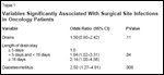 Variables Significantly Associated With Surgical Site Infections in Oncology Patients