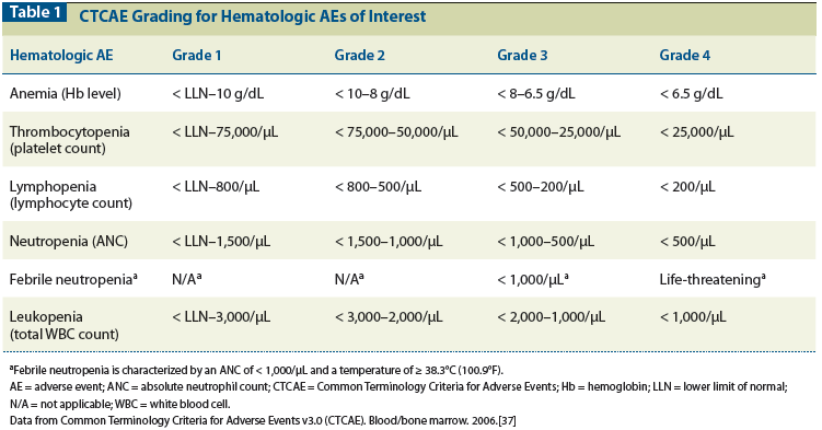 Table 1: CTCAE Grading for Hematologic AEs of Interest