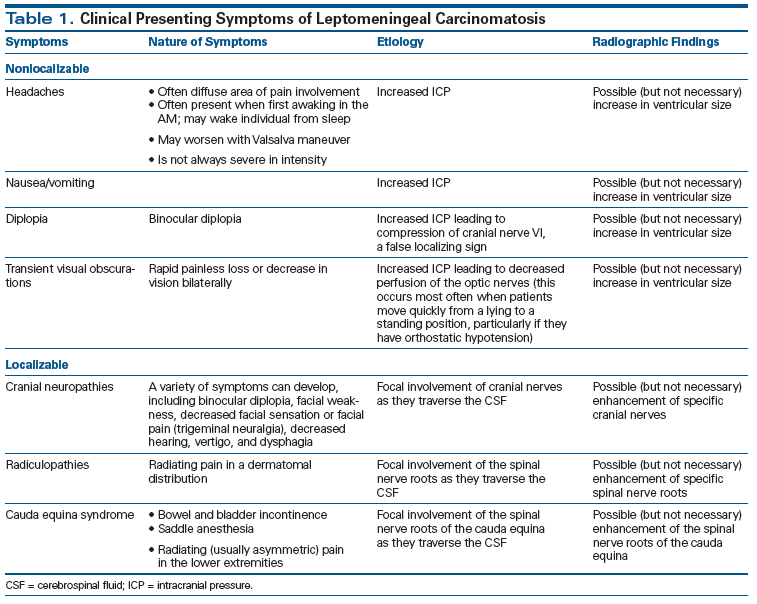 Table 1. Clinical Presenting Symptoms of Leptomeningeal Carcinomatosis