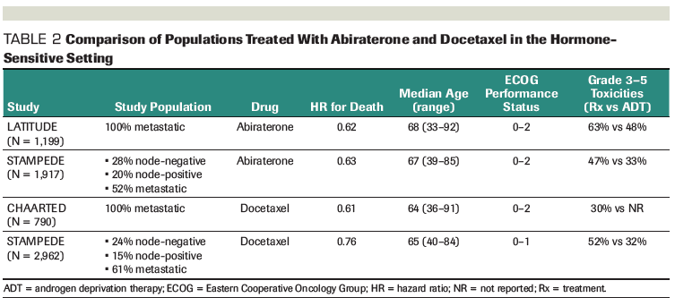 Table 2. Comparison of Populations Treated With Abiraterone and Docetaxel in the Hormone-Sensitive Setting