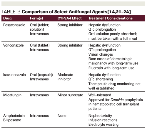 TABLE 2: Comparison of Select Antifungal Agents[14,21-24]