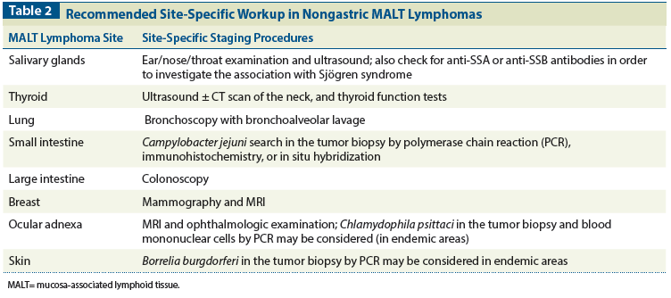 Table 2: Recommended Site-Specific Workup in Nongastric MALT Lymphomas