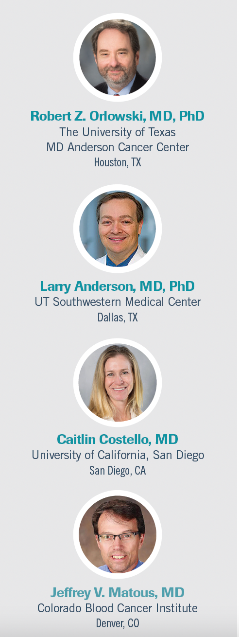 The expert panel included Larry Anderson, MD, PhD, associate professor in the Department of Internal Medicine in the Division of Hematology/Oncology at UT Southwestern Medical Center in Dallas, Texas; Caitlin Costello, MD, assistant professor of medicine at the University of California, San Diego; and Jeffrey V. Matous, MD, member physician at the Colorado Blood Cancer Institute in Denver.
