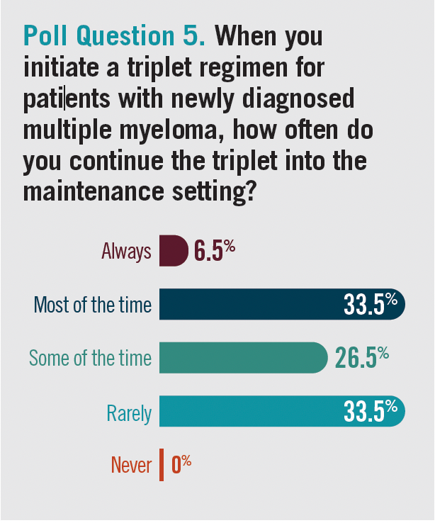 Poll Question 5. When you initiate a triplet regimen for patients with newly diagnosed multiple myeloma, how often do you continue the triplet into the maintenance setting?
