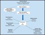 The management of pain in the elderly must take into account other conditions that can greatly influence how the patient experiences pain, including psychosocial factors, such as culture and beliefs; cognitive impairment; emotional and spiritual distress, such as depression and anxiety; and physical symptoms such as nausea, constipation, sedation/confusion, dyspnea, and asthenia.[1,15-17] Any of these conditions can worsen the pain experience. Patients who experience unrelieved pain have less hope and greater likelihood of depression than patients whose pain is well controlled,[11] tending to present also with sleep and appetite disturbances and worsening of cognitive dysfunction.[2] When assessing and managing cancer pain in elderly persons, it is extremely important to consider all physical, psychosocial, and spiritual factors as well as the physiologic changes that accompany the aging process (Figure 1).