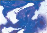 The patient was also referred to an interventional radiologist to obtain a pathologic diagnosis of the suspicious liver lesion. Under ultrasound guidance, FNA of the liver lesion was performed. Cytology revealed reactive hepatocytes and fibrosis, consistent with hemangioma (Figure 4).