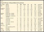 • Monoclonal Antibody–Based Therapies-Rituximab, a chimeric antibody directed against the CD20 antigen, has been widely employed in B-cell malignancies. In mantle cell lymphoma, the standard regimen of four weekly infusions of 375 mg/m2/wk has been demonstrated to have modest activity, with an overall response rate (ORR) of 37% in the relapsed setting, and a median duration of response of 1.2 years.[14] Ghielmini and colleagues reported that prolonged treatment with rituximab did not significantly improve response rate, duration of response, or event-free survival after induction with rituximab alone.[15]
