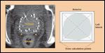 Merrick and colleagues evaluated the radiation dose to the neurovascular bundles by means of a twodimensional geometric model derived from day 0 computed tomography (CT) scan-based dosimetry (see Figure 4).[7,41] Because the position of the neurovascular bundles varies somewhat from patient to patient, represents a plexus and not a well-localized structure, and is not identifiable on CT scan, the radiation dose delivered to this region was determined by both point-dose measurements and dose-surface histograms.