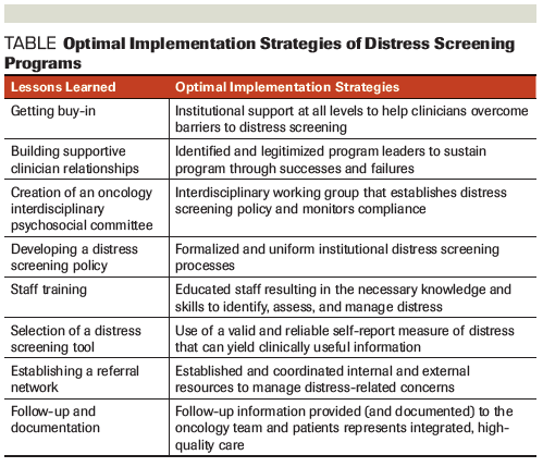 Table. Optimal Implementation Strategies of Distress Screening Programs