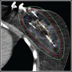 • High Dose Rate-Limited data are available for the use of high–dose-rate brachytherapy for retreatment. A preliminary experience in 10 patients was reported by Trombetta et al[10] using the intracavitary MammoSite balloon technique. With a reirradiation dose of 3.4 Gy × 10 fractions, these investigators’ observations suggest acceptable toxicity and good cosmesis. However, the authors suggest alternative intracavitary techniques might achieve better dosimetry when the tumor bed is in proximity to the skin of the breast or the rib. The authors caution that these preliminary observations warrant additional study, with specific attention to technique and dose fraction schedule.