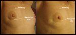 Further, some investigators have studied clinical and pathologic criteria to help distinguish between a true recurrence and a new primary. Haffty et al[21] distinguished new primaries as lesions that were far removed from the original scar, were of a different histology than the original primary tumor or had diploid tumors in the face of an aneuploid primary tumor. They observed statistically significant differences in the 5-year survival-89% for new primary tumors and 36% for lesions classified as a true recurrence. A subsequent update on this work with a mean follow-up of over 10 years confirmed the differences in outcome between a new primary tumor and a recurrent lesion.[20]