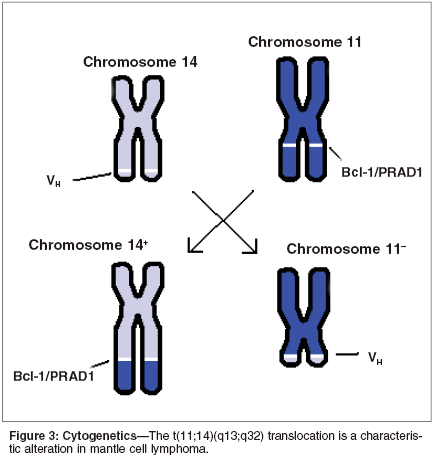 Immunophenotype, cytogenetics, FISH, and flow cytometry are sensitive and useful tools for identifying t(11;14)(q13;q32) and cyclin D1 overexpression- both of which are characteristic of MCL-in tissue obtained from tumor sites and bone marrow biopsies.
