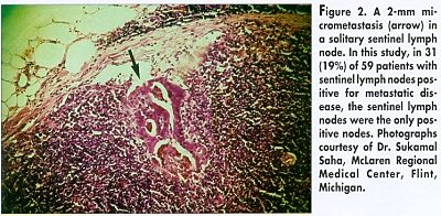 Exclusive sampling of the sentinel nodes correctly predicted the presence or absence of lymph node metastasis in 96% of the cases, reported Sukamal Saha, MD, assistant professor of surgery and anatomy, McLaren Regional Medical Center, Flint, Michigan.