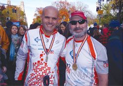 Oncologist Howard Hochster, MD, professor of medicine at New York University Cancer Institute, ran the 2008 New York City Marathon to benefit Team Continuum which provides immediate nonmedical support and assistance to cancer patients and their families. Dr. Hochster (right) is pictured with fellow runner Geraldo Rivera (not the TV personality). Mr. Rivera’s 11-year-old daughter is a brain cancer patient and a Team Continuum grant recipient. Dr. Hochster and Mr. Rivera were among 400 runners supporting Team Continuum. The non-profit organization raised more than $5.5 million last year to fund their cancer care and support efforts.