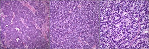 A 3-year-old child was brought to the physician's office after the mother felt a mass in the abdominal area. Imaging revealed the presence of a mass that appeared to be in the right kidney. Surgical resection of the tumor was performed.