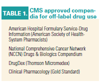 ABSTRACT: Coverage parameters triple as Centers for Medicare & Medicaid Servicessanctions three more compendia as acceptable for off-label use. Criticssay that more choices may not lead to the best decision-making.