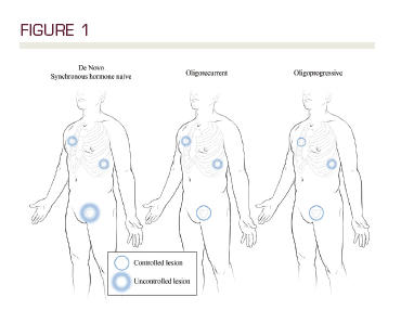 The oligometastatic state in prostate cancer includes de novo hormone naïve metastatic disease present at initial diagnosis, oligorecurrent disease following definitive primary treatment with surgery and/or radiation, and isolated areas of treatment-resistant or oligoprogressive disease which persist after otherwise successful systemic therapy such as in castration-resistant prostate cancer (CRPC) (see Figure 2).