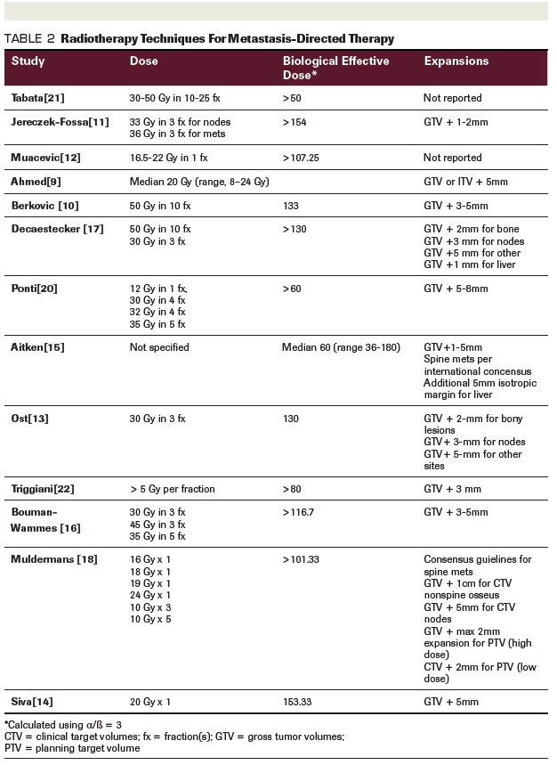 TABLE 2: Radiotherapy Techniques For Metastasis-Directed Therapy