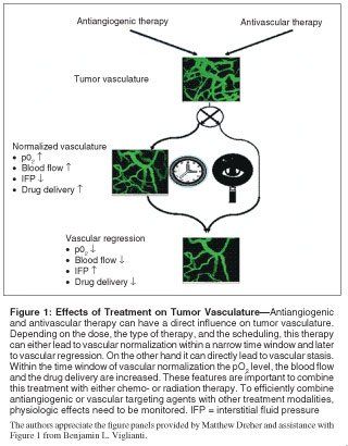 In fact, correcting the overexpression of proangiogenic factors (such as vascular endothelial growth factor [VEGF]) by antiangiogenic compounds leads to a better balance of pro- vs antiangiogenic factors. This can lead to maturation and/or pruning of immature vessels, causing "normalization" of tumor vasculature.[5-10] Of utmost importance in "normalization" is whether oxygen and drug delivery are enhanced, and if so, the kinetics of the responses.