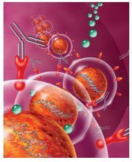 Conjugated monoclonal antibodies have been modified by being physically attached to antitumor agents such as radioisotopes, chemotherapy drugs, toxins, or other biological agents. After targeting specific antigens, conjugated MoAbs attack tumors by releasing the attached antitumor agents into the cells or by or attracting and concentrating high levels of local radioactive emissions to the site.
