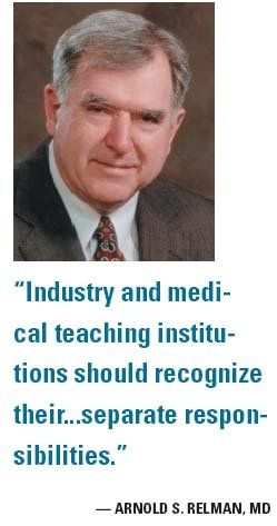 “Medical education is a professional responsibility, and if doctors are going to be trusted as advisors, counselors and fiduciaries for their patients and advising them on their drugs, their education should not be subsidized by the manufacturers of those drugs,” said Dr. Relman, professor of medicine and social medicine emeritus, Harvard Medical School. “It’s a no-brainer. [Industry sponsorship] ought to be made illegal.”