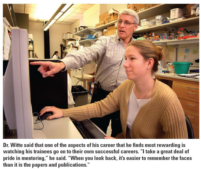 During his postdoctoral fellowships, Dr. Witte had what he considers one of the seminal moments in his career: Discovering that phosphotyrosine is the end product of a kinase reaction. “That was a major lightbulb moment,” he said.