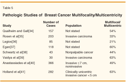 36. Lagios MD: Multicentricity of breast carcinoma demonstrated by routine correlated serial subgross and radiographic examination. Cancer 40:1726-1734, 1977.
