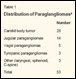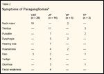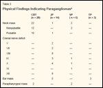 Paragangliomas of the head and neck are rare tumors, accounting for only 0.012% of all tumors reviewed by the surgical pathology department of Memorial Sloan-Kettering Cancer Center between 1938 and 1975.[25] The carotid body is the most common site of paragangliomas in the head and neck. Carotid body tumors, jugular paragangliomas, and tympanic paragangliomas account for 80% of all head and neck paragangliomas,[26] with vagal paragangliomas accounting for another 5%.[27] Nasal, orbital, laryngeal, and other paragangliomas occur much less frequently. Our review of 47 patients with 53 paragangliomas treated over a 10-year period (1990-2000) is consistent with the relative incidence of specific paragangliomas as reported by others (Tables 1-3).[28]
