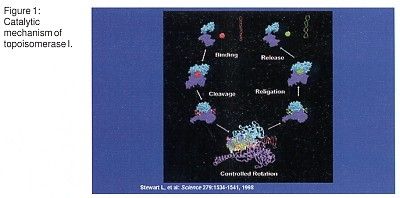 The catalytic mechanism of topoisomerase I involves binding, cleavage, controlled rotation, religation, and release (Figure 1). "Possible mechanisms of resistance to irinotecan [Camptosar] seen in cell culture models include alterations in irinotecan metabolism, cellular accumulation of irinotecan or SN-38, SN-38 interaction with the topoisomerase I-DNA complex, and processing of topoisomerase I-mediated DNA damage," Dr. Rubin explained. "Cell culture models provide evidence for multiple mechanisms of irinotecan resistance, but clinical relevance has not been established for any of the resistance mechanisms identified in cell culture models."